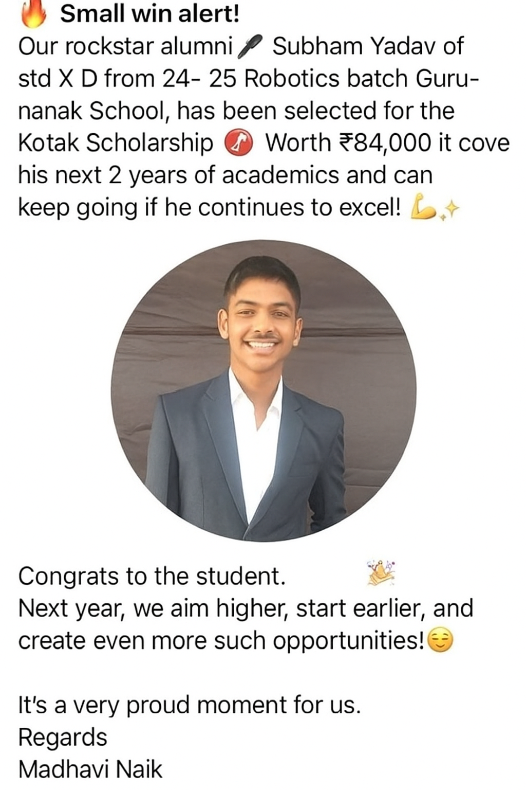 Gurunanak School Shines! Subham Yadav Bags Prestigious ₹84,000 Kotak Scholarship