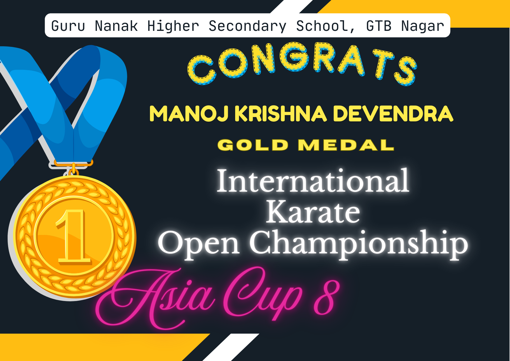 Guru Nanak Higher Secondary School Student Wins Gold at Asia Cup 8 Karate Championship